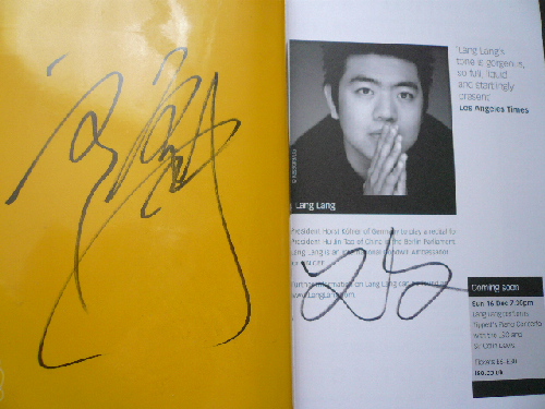 2007年4月12日(木) 19時半開演 バービカンホール Pierre Boulez Mémoriale Ravel Piano Concerto in G Luke Bedford Outblaze the Sky Berlioz Symphonie fantastique Lang Lang piano Daniel Harding conductor London Symphony Orchestra * * * * * 興奮冷めやらぬwackyでございます。 だから今日は文章、破壊的ですが、悪しからず。 ランラン、驚異的でした。 Natalie Dessay以上の衝撃。 今まで「オーバーアクション」だなんて、食わず嫌いしていました。 ごめんなさい。 ラヴェルの冒頭2分で、落ちました。 なんじゃこりゃ!って思いました。笑 (もちろんラヴェルの作品じたいにも「すごい!」と思いましたけれど。) He was outstanding, fabulous, breath-taking..... He is a mad music monster. But I absolutely love, adore his music. He is the muse. But,,,, he could have gone MAD. Have you ever seen it?? "Lang Lang Gone Mad" He was exactly no-doubtedly like this... 有名どころで、You Tubeの「Lang Lang Gone Mad」っていうのがありますが、まさにです。まさにこのまんま。狂気と興奮のピアニストです。 初めて男性演奏家で、ヘアスタイリスト仕様の髪型の演奏家に出会いました。 どんなにmockしても一糸乱れないその完璧なスタイリング。笑 そして、衣装が面白い。 それだけでも、十分に「うほーw」です。 アンコールは中国の曲だそうで、半分以上、即興のように聴こえました。 why he is fantastic: ■ステージマナーが美しい (お辞儀や動作がとても丁寧で、他のartistへのrespectfulな態度が◎) ■音楽が体中から溢れてくる (アクロバティックなまでの、演奏スタイルのせいか?) ■音のデパート ■エンターテイナー性 (見ていて、無条件に笑顔になってしまう) ■心に色んな感情と傾れ込んでくる音楽 (ラヴェルの2楽章とアンコールは、ブラーボ、ブラーボ、ブラーボ!) ■あと、その卓越した機械のような正確なテクニック (演奏中に客席をまじまじと眺めたり、ほとんど鍵盤見てないのも怖いです) 昨晩よりwackyのofficial favourite pianistです。 もっというと、under 40で、一番素敵だと思うピアニストです。 とにかく、音がいい。 もし音の図鑑があるとしたら、ランランのピアノはそれかな。 音楽性も豊かだし、怖いまでのリズム感の良さと、完璧なテクニック。 私が言うのも無礼ではありますが、大体どんなピアニストでも「こう来るだろう」と予想出来る演奏が多いけれど、ランランは予想以上、期待以上のことを「あらよッ」とやっていくピアニストです。サーカスのようなエンターテイナー素質があるというか。笑 聴いていて、身体がウズウズするんです。 もう居ても立ってもいられないぐらい血がざわめく音楽。 音楽で頭がいっぱいになる演奏をランランはします。 一生聴いていたい「音」を持ったピアニストです。 Universal Music Official Video Clip on You Tube Chopin; Nocturne No.8 In D Flat Op.27 No.2 BerLin Philharmoniker/Simon Rattle:ベルリンフィルピクニックコンサート? Tchaikovsky Piano Concerto part 1 終演後に、サイン会がありまして、もちろん並びました。 中国人の女の子の大群にまみれつつ、1人で黙々と待ちました。 もうここまでくると、マネジメントの使命だとかいっている余裕はありません。ミーハー心大全快。やっぱり一ファンとして、ここは押さえておかないと…。 手帳の裏表紙とプログラムにサイン頂きましたw 手帳に関しては「Here? Are you really REALLY sure?」とランラン本人に念を押されました。笑 その後、列の前にいらした老紳士にお願いをして、写真を撮って頂き、後日送って頂くことに…♡快くお願いされてくださった紳士に改めて大感謝。 他の曲についても触れます。 1曲目、バルトークは非常に繊細で、余韻や残響が美しい作品でした。ハーディングも小編成なので、指揮棒を持たずにいました。 後半に「サプライズ」で、本公演の最大スポンサーUBSの「LSO and UBS Sound Adventures」の一環としての若手作曲家の世界初演がありました。バルトークとラヴェルのあとでは、ちょっと感度に優れないかなという印象も否めませんが、シンプルな構造の耳に優しい作品でした。マネジメント学生としては、企業とオケとの関係も気になるところです。詳しくは、UBSのホームページでどうぞ。 で、幻想ですよ。ラヴェルの華々しさは一気にここで吹き飛びました。 ハーディングの幻想は、力強くてどっしりした感じでした。2楽章は本当に華やかなワルツ。3楽章は「新世界」と同様で、たぶん人間の限界に近いほどのslowさ。でも、本当によく考えてある解釈でした。待ってましたの「断頭台」(オケ作品でベスト3に入るぐらい大好き)は、もうたまりません。4楽章は、ここぞとばかりに何かが弾けたような演奏でした。 ハーディングの指揮を初めて見ることができました。いつもはちょうど第2ヴァイオリンで見えないんですが、昨夜はラッキーで、初めてvisualもしっかり見ることが出来ました。ちょうど横顔を捉える角度だったのですが、彼の顔をフルに使った様子は意外でした。(ちょっと怖かった)プロモーション写真のcoolさは、正直微塵もないです。苦笑。指揮自体も、