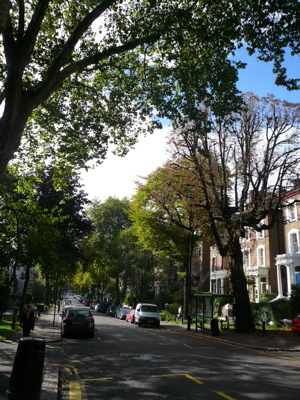 本邦初公開。 家の前の通りです。 ハムステッドヒースに近いこともあり、緑が多いのが特徴です。 家を背にして左側。高級住宅?がつらなります。↑ 家を背にして右側。↑ 晴れてる日と夕暮れ時にiPodくんをお伴に、High Streetまで遠回りして散歩に行くのが大好きです。今度、晴れたら、本とお茶と甘いもの持ってHampstead Heathまで散歩に行こう。 マーケットで有名なCamden Townも歩いて15〜20分ぐらいなんだれど、やっぱり私はHampstead High Streetが好きです。小さなカフェやベーカリー、小さい雑貨屋さんが可愛くならんでいるHigh Streetは、歩いてるだけで楽しいです。週末の午前中は小さなマーケットが出たりして、賑わっています。 |